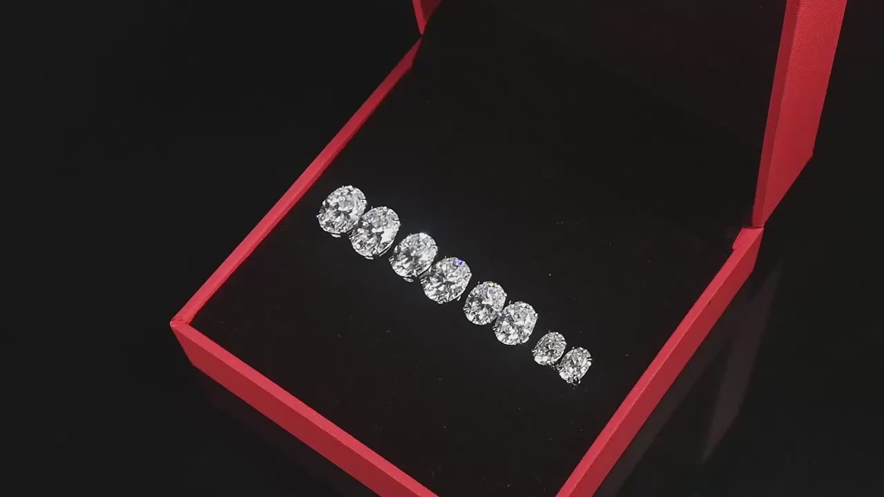 Die ovalen, brillant geschliffenen Moissanite in VVS1-Klarheit und D-Farbe erzeugen ein intensives Funkeln, das selbst echten Diamanten Konkurrenz macht.
